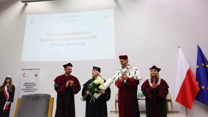 B. wiceprzewodnicząca Komisji Europejskiej, czeska prawniczka i polityczka Vera Jourova odebrała we wtorek tytuł doktora honoris causa Uniwersytetu Łódzkiego. Jak mówiła, tytuł przyjęła „z pokorą i odnowionym zobowiązaniem do obrony wartości, które ją łączą z UŁ – prawdy, wolności i praworządności.”