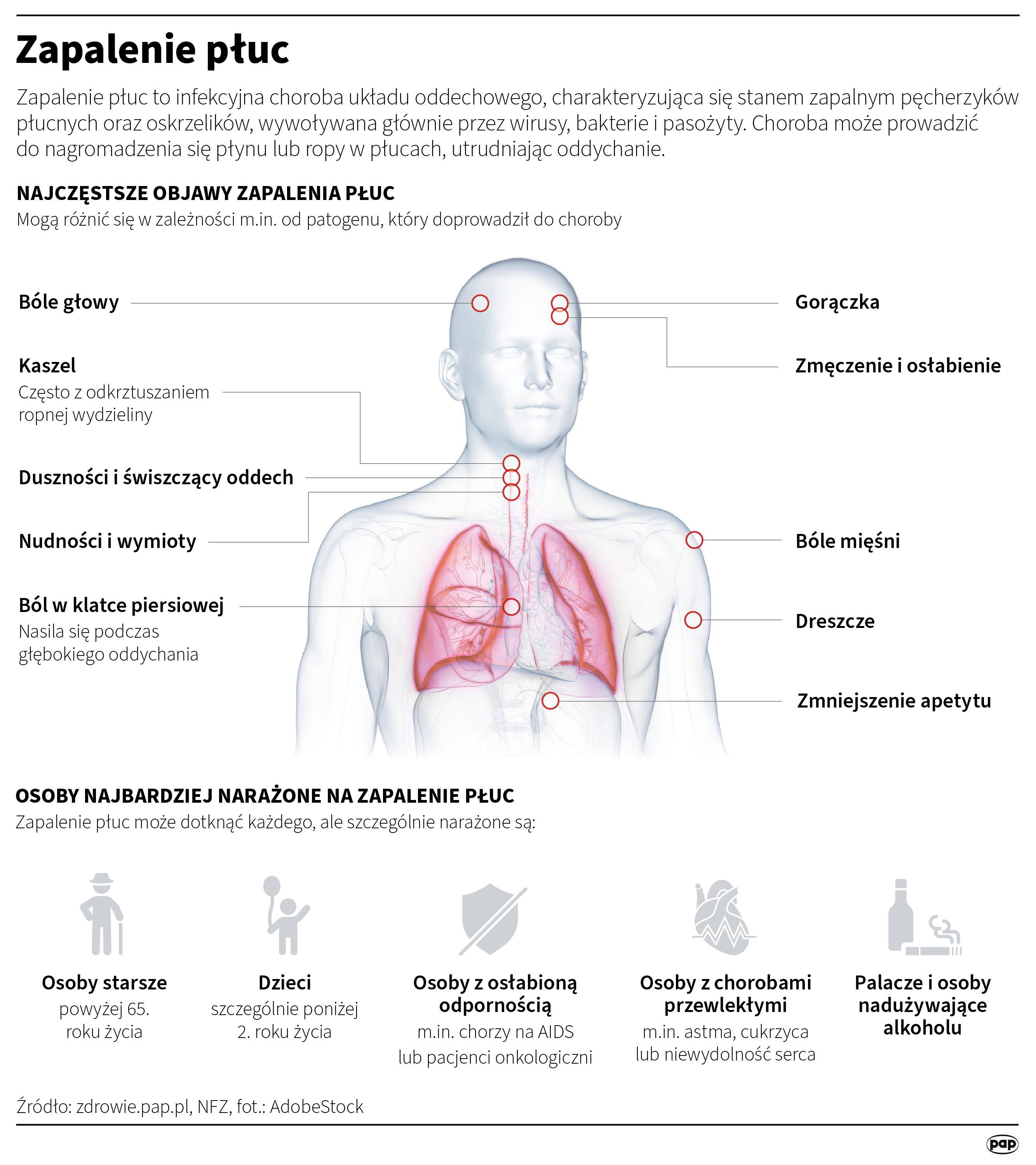Liczba zgonów na zapalenie płuc spadła w zeszłym roku w porównaniu z 2023 r. o 3 proc., zaś samych zakażeń było mniej o 2 proc.