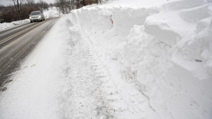 Zaspy przy drodze wojewódzkiej nr 884 w Łubnie, 6 bm. Blisko 130 pługopiaskarek pracowało na drogach krajowych i wojewódzkich na Podkarpaciu w niedzielę rano (dd/cat)