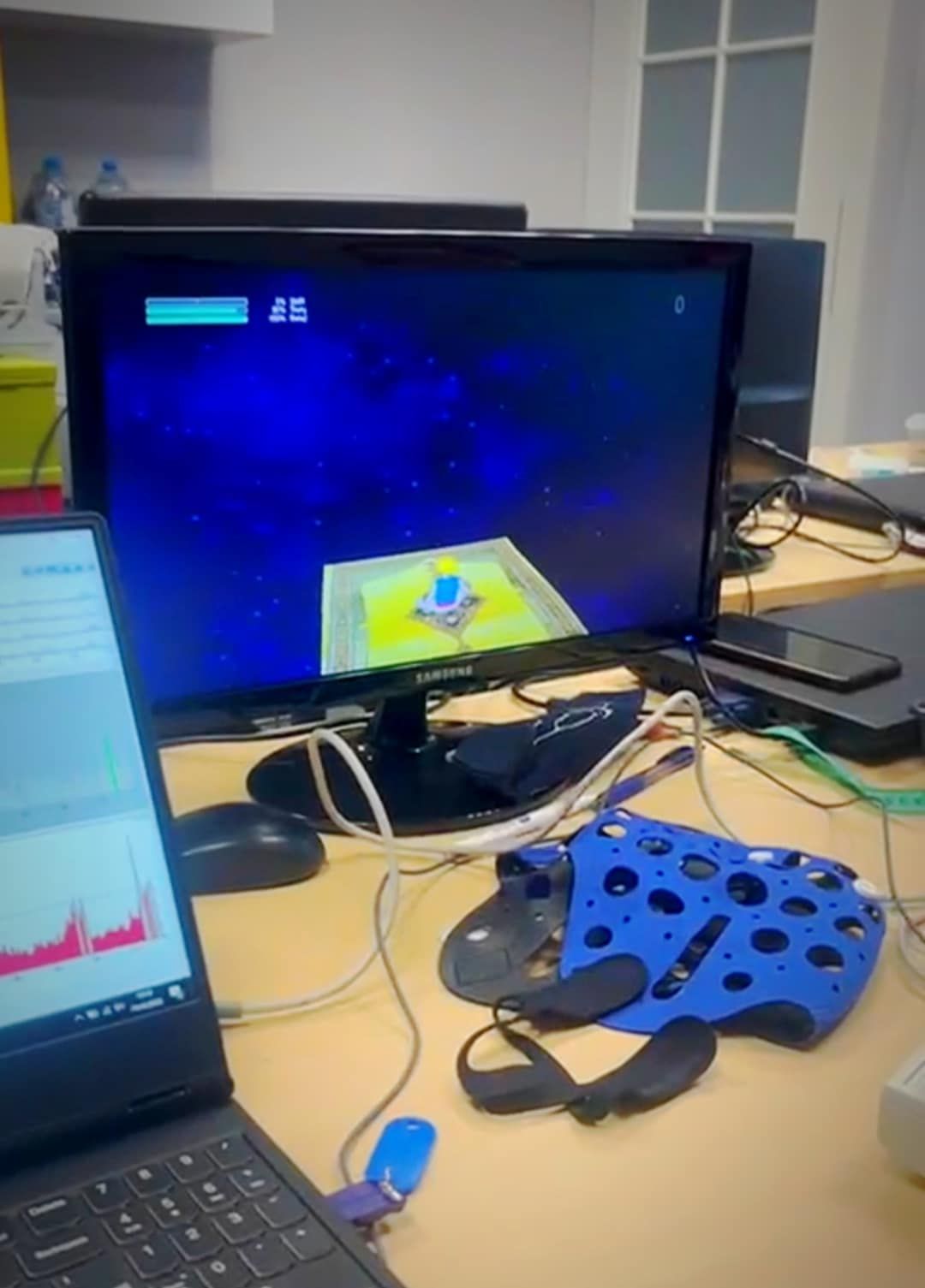 Jak tłumaczył Marcin Dornowski, sesje treningowe przypominały grę komputerową. Astronauta, mając na głowie czepek z elektrodami, w tym przypadku sterował unoszącym się na ekranie latającym dywanem. Fale mózgowe na odpowiednim poziomie sprawiały, że dywan leciał prosto, a postać siedząca na dywanie patrzyła przed siebie. Spadek odpowiedniej regulacji skutkował np. opadaniem lub obracaniem się dywanu i jego pasażera.