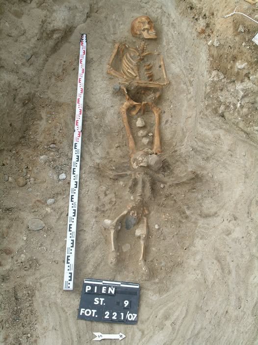 Wśród atypowych pochówków jest też grób znajdujący się niemal na skraju cmentarzyska, który należał do kobiety w wieku 30–50 lat. Na jej lewej dłoni - opisują badacze - spoczywał kamień, a drobniejsze kamyki otaczały jej cały lewy bok. Analizy antropologiczne wykazały, że kobieta cierpiała na kiłę trzeciorzędową, późne stadium choroby, która w dawnych społecznościach budziła lęk, wykluczenie i niepokój. W trakcie prac badawczych kobieta była określana jako „syfilityczka". Choć grób odkryto już w 20027 roku, to wciąż trwają jego badania, bo szczątki są bardzo zniszczone, niezwykle trudno z nich uzyskać DNA, które dałoby odpowiedzi na wiele pytań dotyczących życia zmarłej.
