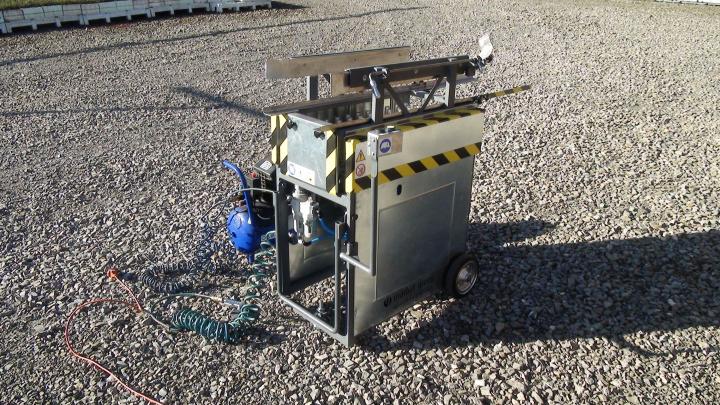 Do ramy ruchomej wkładana jest kaseta z sadzonkami przeznaczonymi do wyciśnięcia. Szerokość ramy jest dostosowana przy pomocy sprężyście mocowanej prowadnicy. W ramie tej znajduje się również zderzak, który ustala położenie kasety tak, by trzpienie wyciskające trafiały zawsze w otwory od spodu kasety. Rama ruchoma wraz z kasetą nasadzana jest pod wpływem działania siłownika pneumatycznego, co powoduje wyciskanie sadzonek. Po wyciśnięciu sadzonek, rama wraz z kasetą podnoszona jest do góry, ruchem powrotnym siłownika pneumatycznego. Rama stała zamocowana jest na dwóch kołach i wyposażona jest w składaną rękojeść do jej przetaczania.